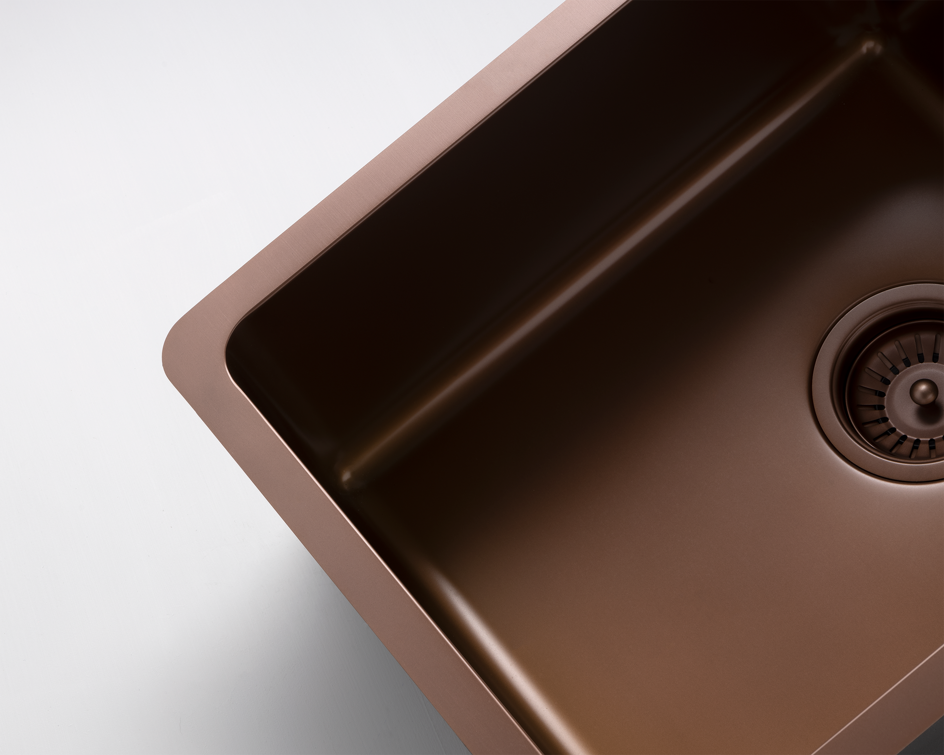 Our philosophy is simple: more space never means less style. Our Large Single Bowl, crafted from durable stainless steel, offers generous sizing for pots, pans and spontaneous dinner plans—all in an eye-catching brass hue.