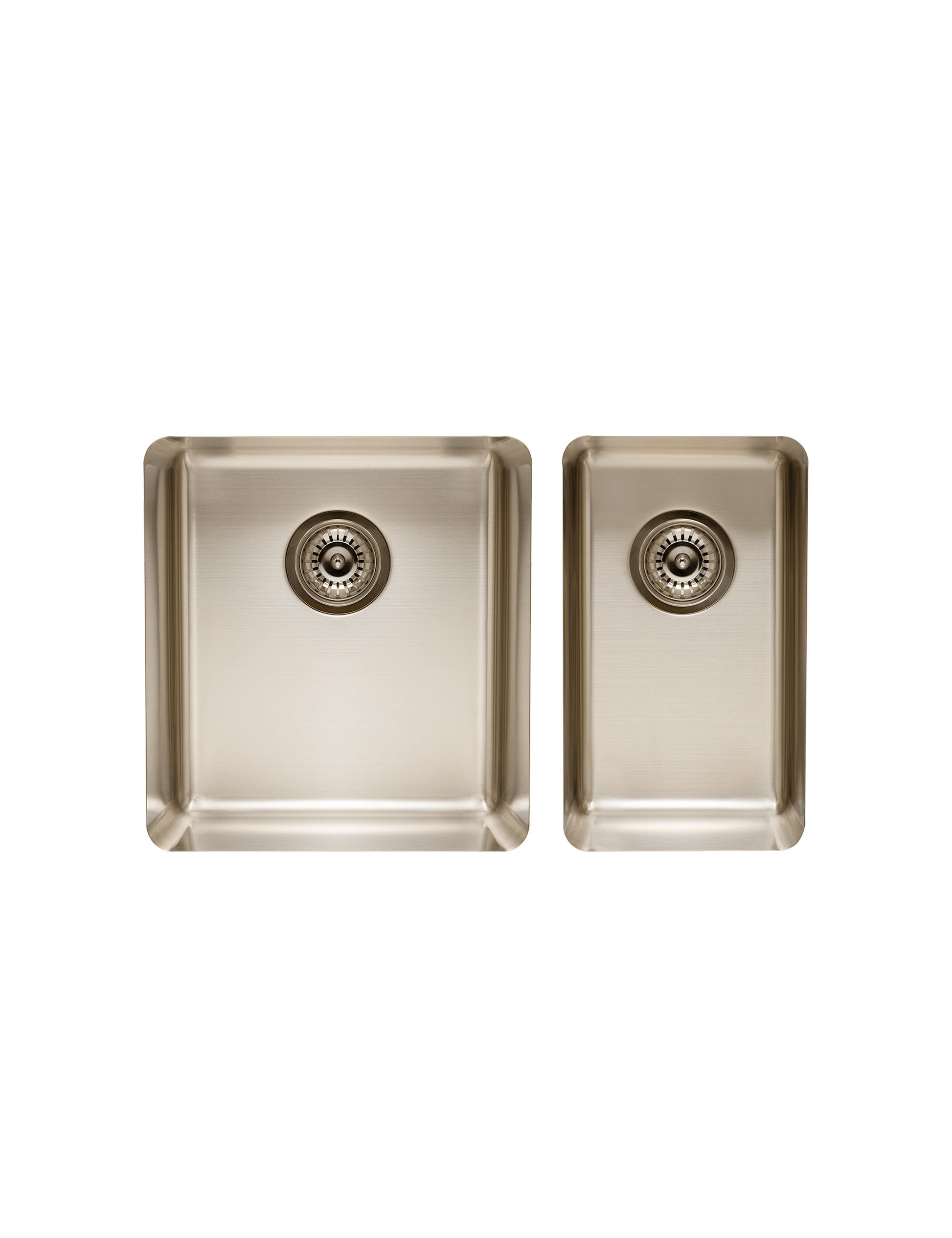 Intentional design, luxe-living, and kitchen efficiency are all yours with our Medium & Small Double Sinks. Featuring a pearl gold finish and adjacent medium and small basins, this double sink is perfect for washing up in style.